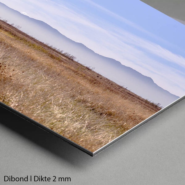 • Hahnemühle Fine Art print op 2 mm dibond | zeer stevig en vormvast | licht materiaal | inclusief U-profiel ophangsysteem.